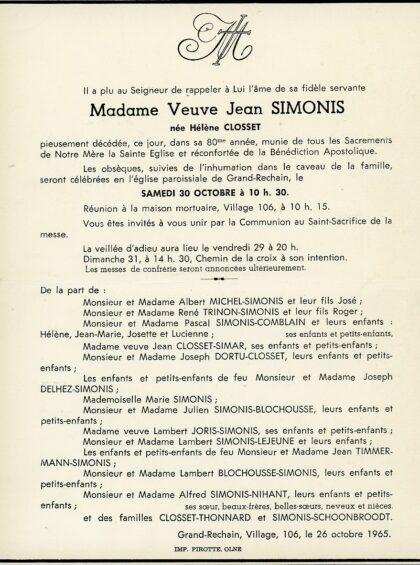 n°1 Marcel Beuvens père, n°2 Maguy Beuvens, n°3 Pauline Blanchy, n°4 Marcel Beuvens, n°5 Marie Blanchy, n°6 Mariette Cranshoff, n° 8 Joseph Beuvens, n°7 et n°9 Grands-parents Blanchy, n°10 Élise Closset, n°11 Gérard Blanchy, n°voir la suite…