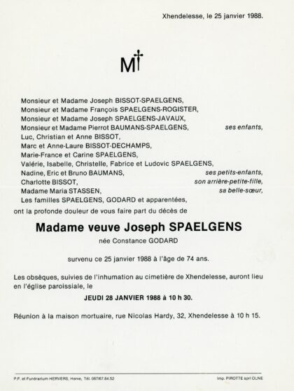 n° 2 Patricia Lonneux, N° 5 la sœur de Nicole Noëlla Jobkenne, n°6 Patrick Donnay, n°7 Marinette Spronck n°11 Véronique Spronck, n°15 Nicole Spronck. n°12 Nicole Jobkenne,