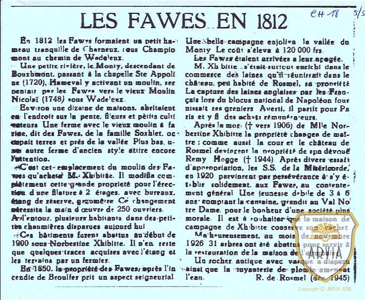 En 1890, l’usine de deux étages occupait encore 250 ouvriers. Soeurs de la Miséricorde en 1926 créèrent un home pour enfants débiles. Extr. du Courrier de Herve de 1945
