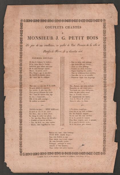 Placard - Mortuaire HERVE – 1826 – Très Révérend Monsieur Dieudonné JACOB – Curé Primaire de Herve pendant 16 ans. Placard mortuaire