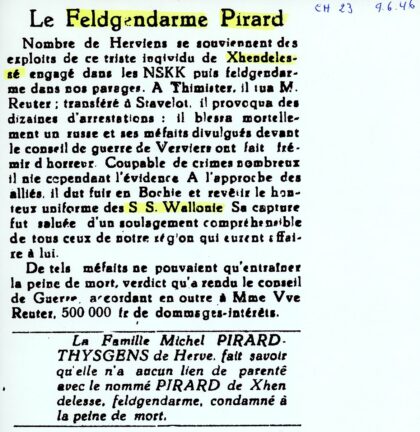 HERVE – 1946 – Pierre LUDGEN serait arrêté………!, imprimé par le Courrier de Herve en 1946