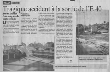 HERVE -1997 – avis de décès de deux jeunes de Herve suite à un accident à la sortie de l’autoroute