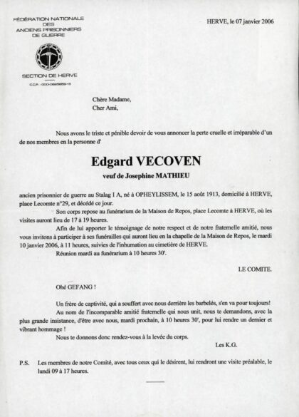 HERVE – 2006 – Albert DOUDELET – porte drapeau des » AMIS DU BON COEUR «