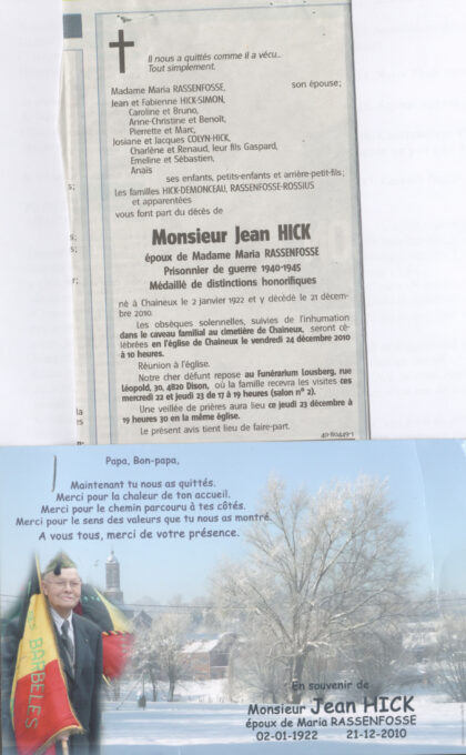 HERVE – 2010 – Alice CHAPELIER – décédée à Aye ( Marche ) en 1913