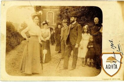 Photo prise devant la cour d’honneur du château de Bolland. Debout, 6ième à partir de la gauche, mon grand-père Henri Hakier (1895-1972). En médaillon, les 2 soldats Bollandois tués, à gauche, Olivier Geromboux, à droite,voir la suite…