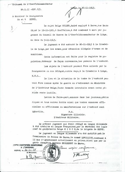 à droite: Marie Fernande JACOB-HOLLER est la sœur d’André Holler, fusillé en 1943 à la citadelle de Liège.