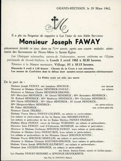 3 photos Faire-Part Mortuaire GRAND-RECHAIN – 1965 – TRINON – SIMONIS – FAWAY – mortuaires de 1962 à 1965