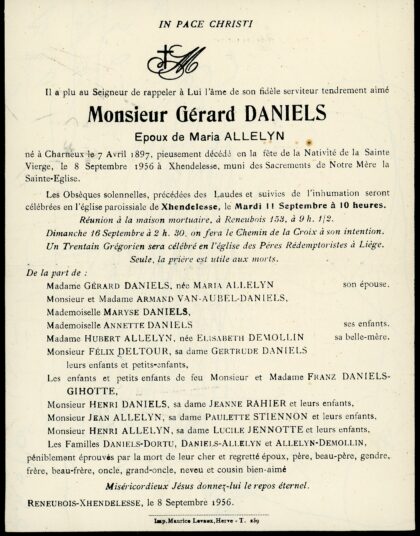 7 photos Faire-Part Mortuaire XHENDELESSE – 1956 – Chanteux – Lekeu – Spirlet – Lonneux – Fagard – Daniels – Généalogie Xhendelesse 7 » faire part » de 1956 à 1970