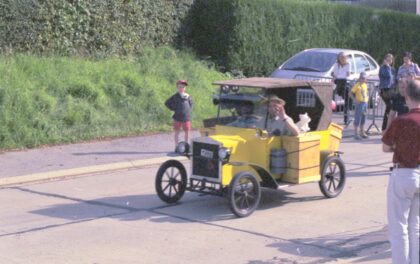 Tintin au Congo (caisse à savon jaune) c’est Yves Ruwet, la chaise roulante de 14-18 c’est Yves Vaessen et Merlin l’enchanteur (caisse à savon bleu) c’est Manu Ernst ( Dany Ernst )