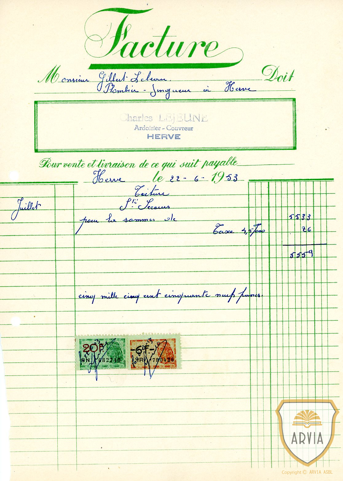 HERVE – 1953 – Charles LEJEUNE – ardoisier couvreur