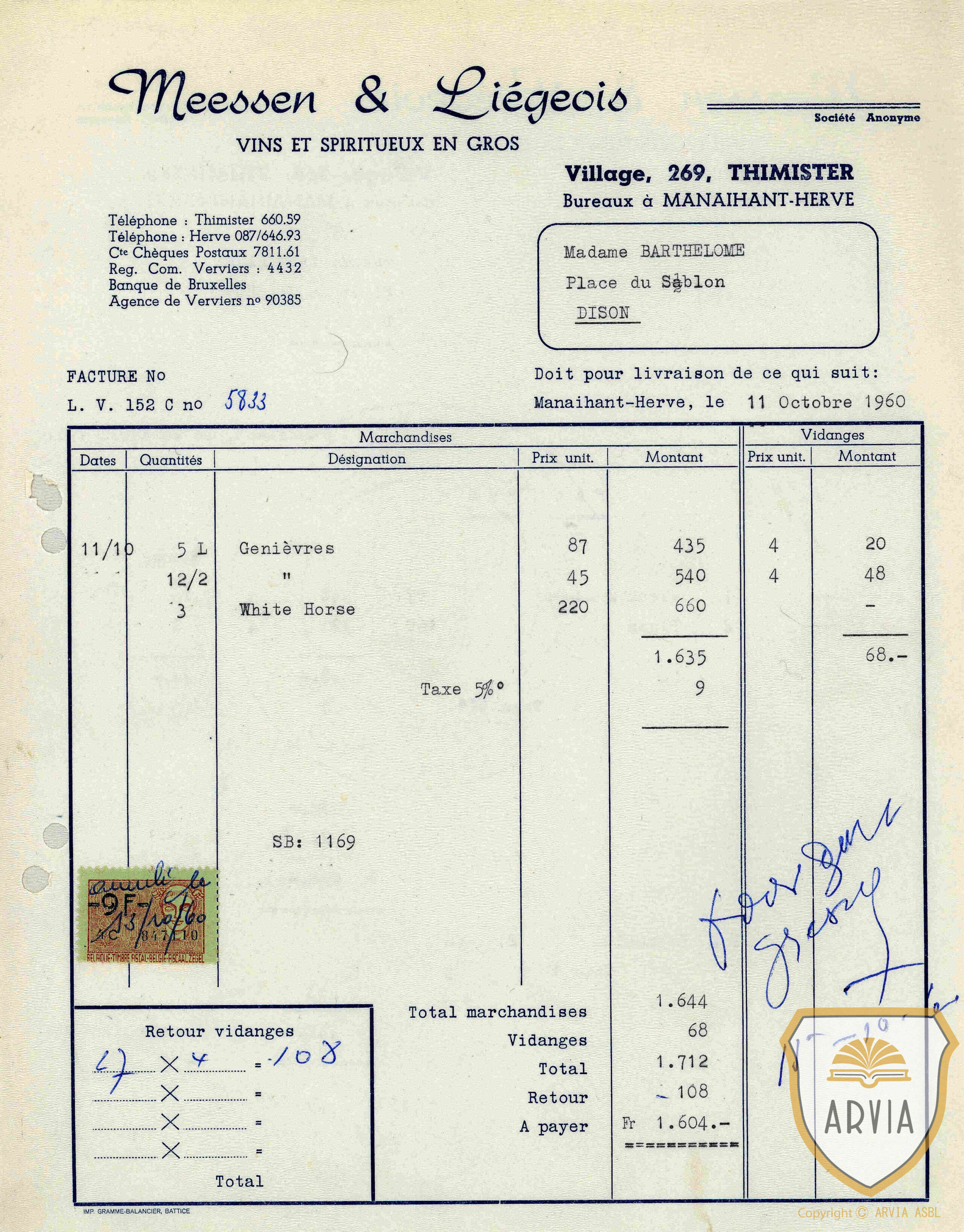 HERVE – 1910 – Brasserie Gambrinus – adjudication