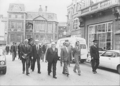 BATTICE – 1985 – Obsèques du Bourgmestre Georges GRAMME – en avant du cortège, les forces de polices locales Georges Gramme, né à Battice en 1926, après de brillantes études au Collège R. Marievoir la suite…
