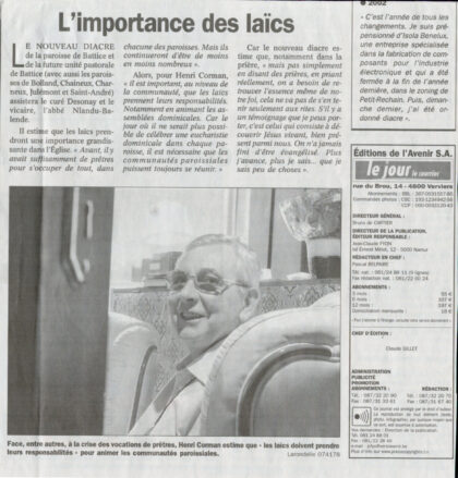 L’abbé Hubert Heylen a terminé sa vocation de prêtre à la paroisse de José (après Moulin/s-Fléron) où, très malheureusement, il est décédé après même pas 2 ans… Il était apprécié de tous… Il avait beaucoupvoir la suite…