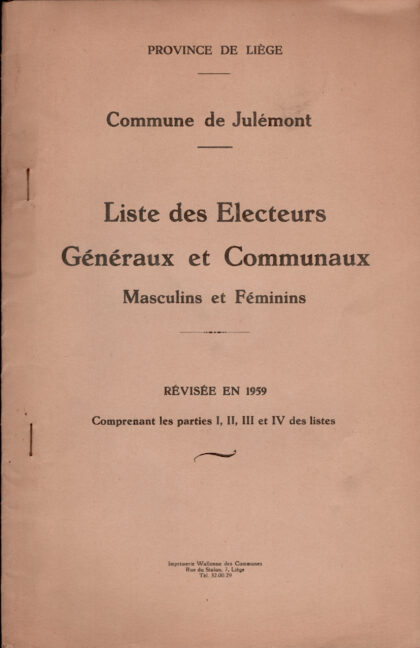 BATTICE – BRUYERES – JOSE – MANAIHANT – 1947 – Liste des électeurs de l’ancienne commune de BATTICE