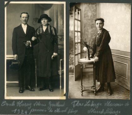 Première photo: Anna et Jean-Guillaume LAHAYE 1930 + Anna LAHAYE 1947 Seconde photo: A gauche: Emile HOSSAY – Marie GAILLARD 1924. à droite: Flore LAHAYE