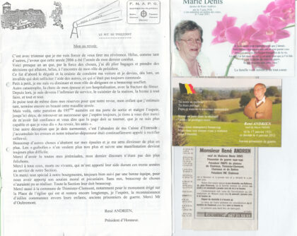 CHARNEUX – 1995 – A l’occasion du 50ème anniversaire de la libération des camps, tout le village se souvient ! Le poème est lu par de la Présidente de la FNAPG Ghislaine Maquinay