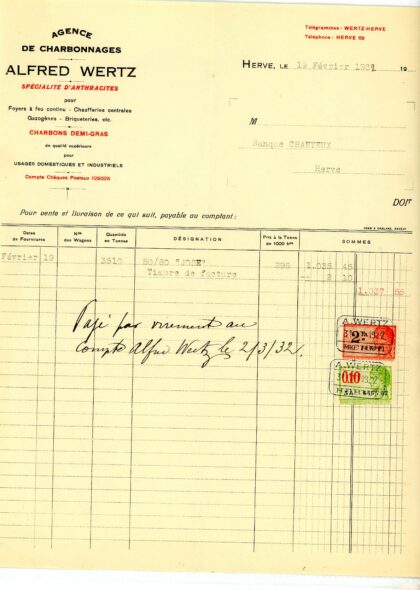 Facture à La Société d’Electricité de HERVE
