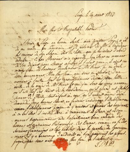 HERVE -1832 – l’Abbé J.B.Victor KINET qui est chef des Sœurs de la Providence et envisage le site de Herve