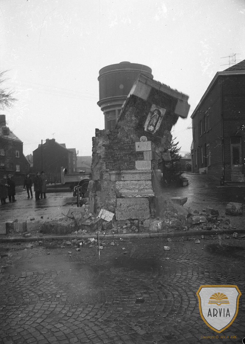 BATTICE – 1980 – 20ème du Jumelage – construction de la fontaine par les pompiers de Battice