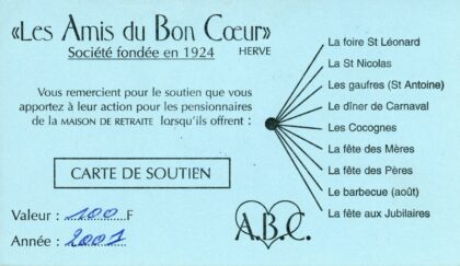 Carte de soutien HERVE ± 2001 – » Les Amis du Bon Cœur » fondée en 1924 – offre à la maison de retraite divers services