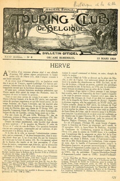 Dans la Revue du Touring Club de Belgique de 1920. Historique sur la Ville de Herve, dictant que au IXème siècle Herve s’appelait » ARVIA » pour la première fois !