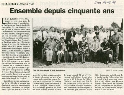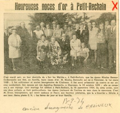 CHAINEUX – 1974 – Noces d’or des époux Nicolas DEMOULLIN – Appoline DEMOULIN de Charneux