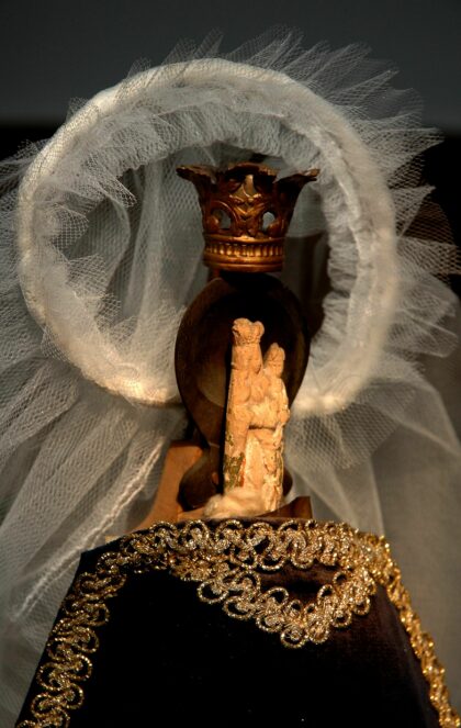 7 photos Image pieuse BOLLAND – Noblehaye – 1975 – le cœur, l’autel de la chapelle et la statue de la Vierge…..la légende La photo couleur de la Vierge ( 10 cm ) est de Viviane Lahaye – Lesoinne . Les autres de JM Doppagne.