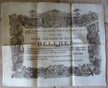 RECHAIN – Francomont – 1786 – Me Anne Elisabeth – SAUVAGE née DELEHEZ