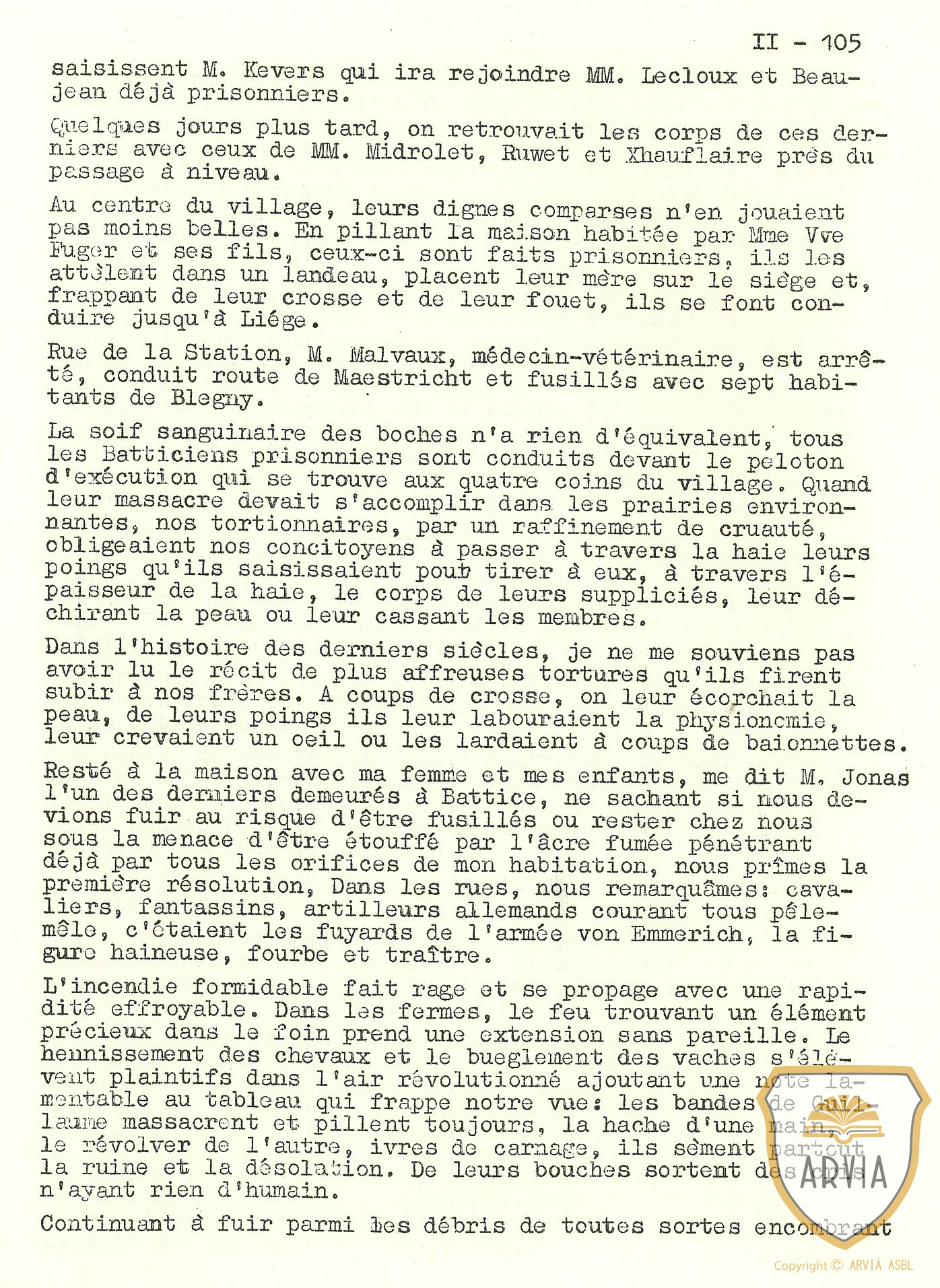 L’abbé Floribert Dubois, dans un ouvrage rédigé dans les années ’50, retranscrit les rapports des différentes paroisses de la commune de Battice.