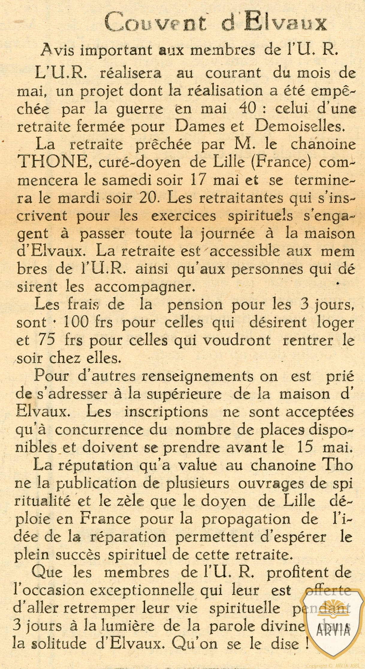 BRUYERES – 1947 – Couvent d’Elvaux – spiritualité – Prêchée pas un chanoine français 14 janvier 202614 janvier 2026 Jean-Marie Doppagne Impossibilité pendant la guerre de 1940; on a crée une retraite fermée pour dames et demoiselles.
