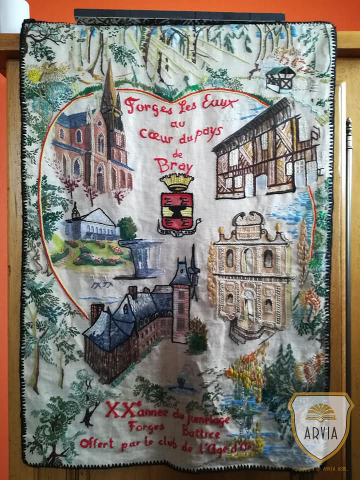 BATTICE -1981- Tapisserie pour les 25 ans du Jumelage avec Forges les Eaux 9 janvier 2019 Jean-Marie Doppagne Fabriqué par le groupe forgion » l’âge d’or »