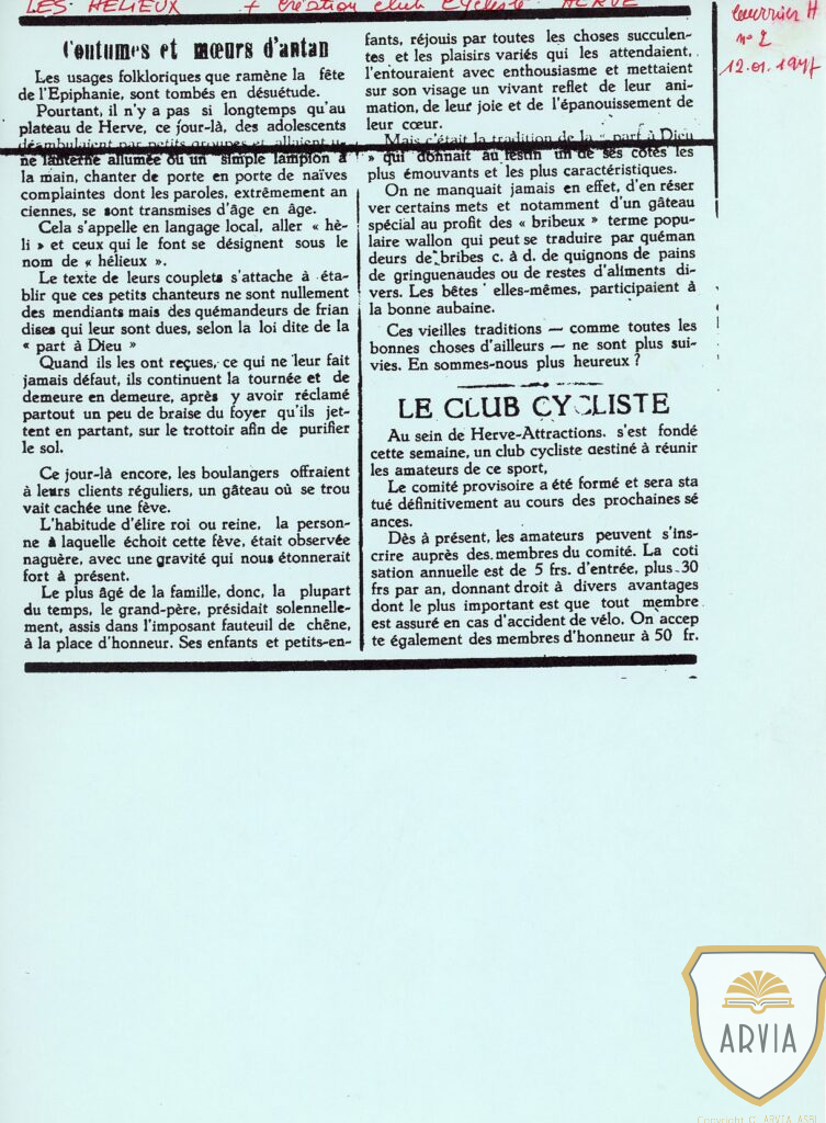 HERVE – 1947 – Herve Attractions – Les Heyeux – création du club cycliste – coutumes et mœurs d’Antan 14 janvier 202614 janvier 2026 Jean-Marie Doppagne