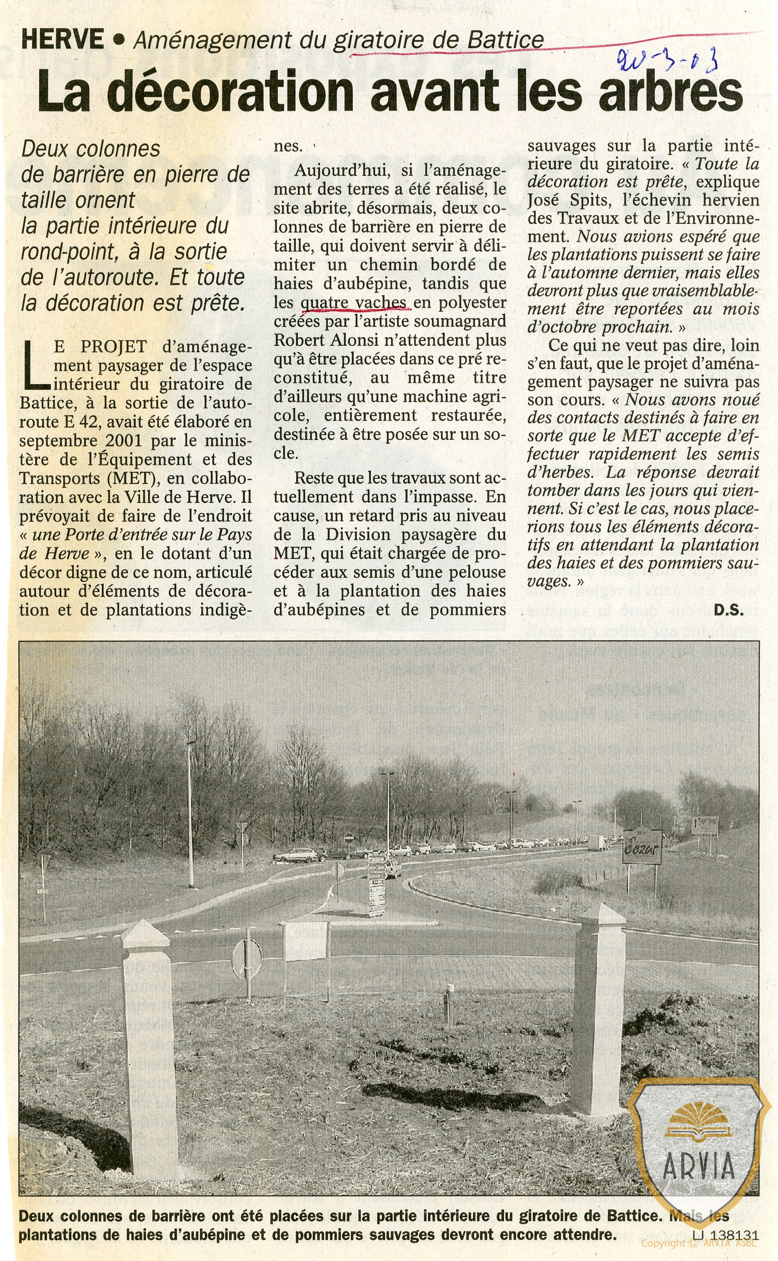 BATTICE 2003 restauration du  » ROND  POINT  DES  VACHES « .