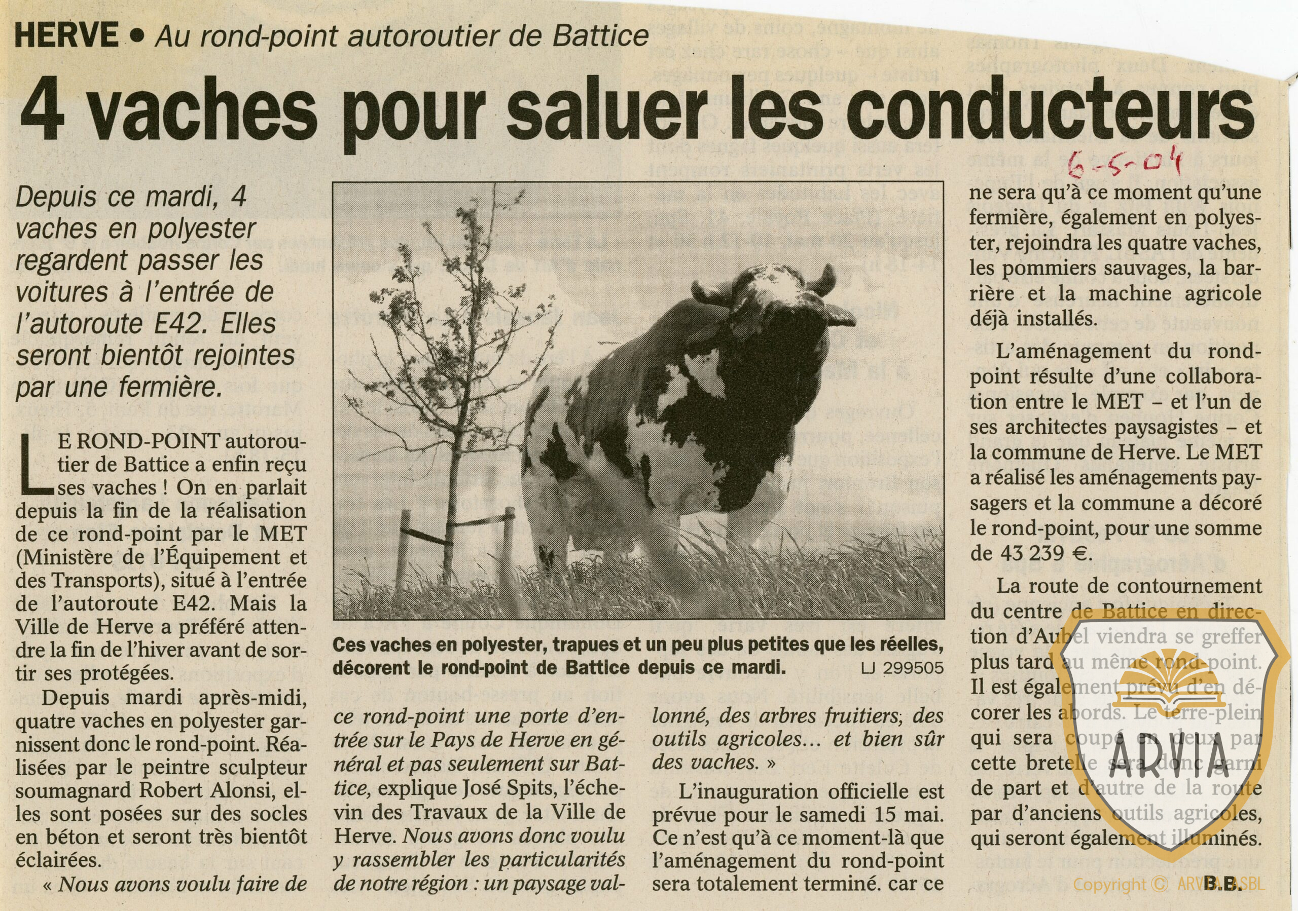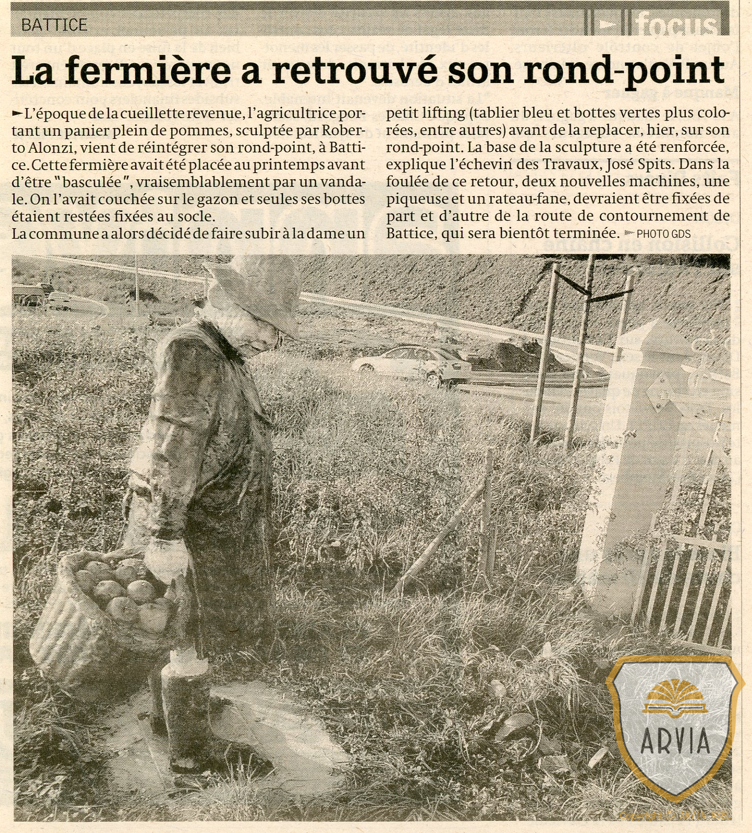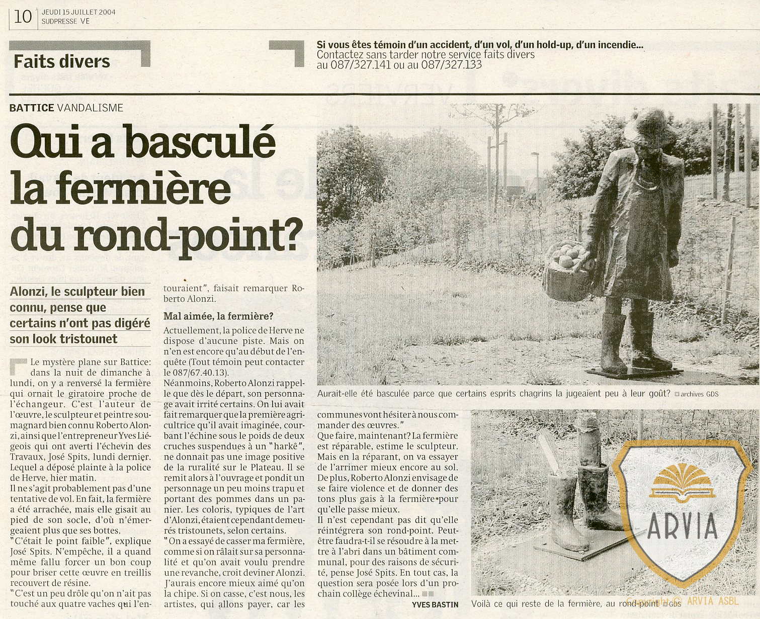 BATTICE – 05/2004 – la fermière ( auteur: Robert Alonzi ) au rond point des  » VACHES  » – dégradations…