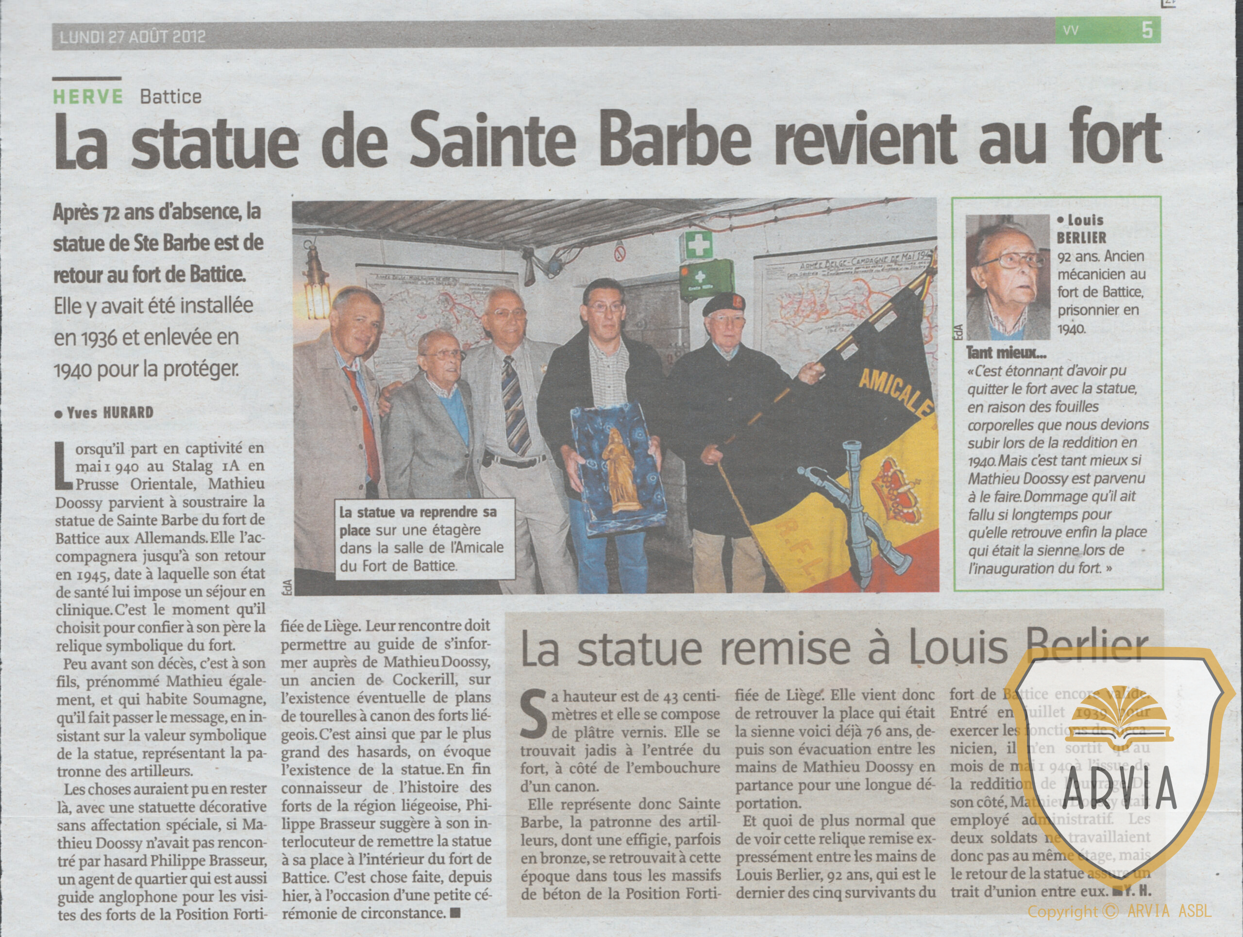 BATTICE-2012-retour de la statue Ste Barbe au fort de Battice & Louis Berlier Dernier ancien du fort 19 février 202619 février 2026 Gérard Bonsang