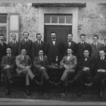 Debouts de gauche à droite : Henri Lottin de la ferme des Dix Bonniers, sous réserve ? Schnakers du Thiernagant, ? Franssen, ? Delbrassine , Alexandre Charlier habitant la maison, Ernest Dehayes du Mur du Couvent, Adrien Toussaint, Guy Meurens, Mathieu Dedée de la Neuve Cour (Hacboister),