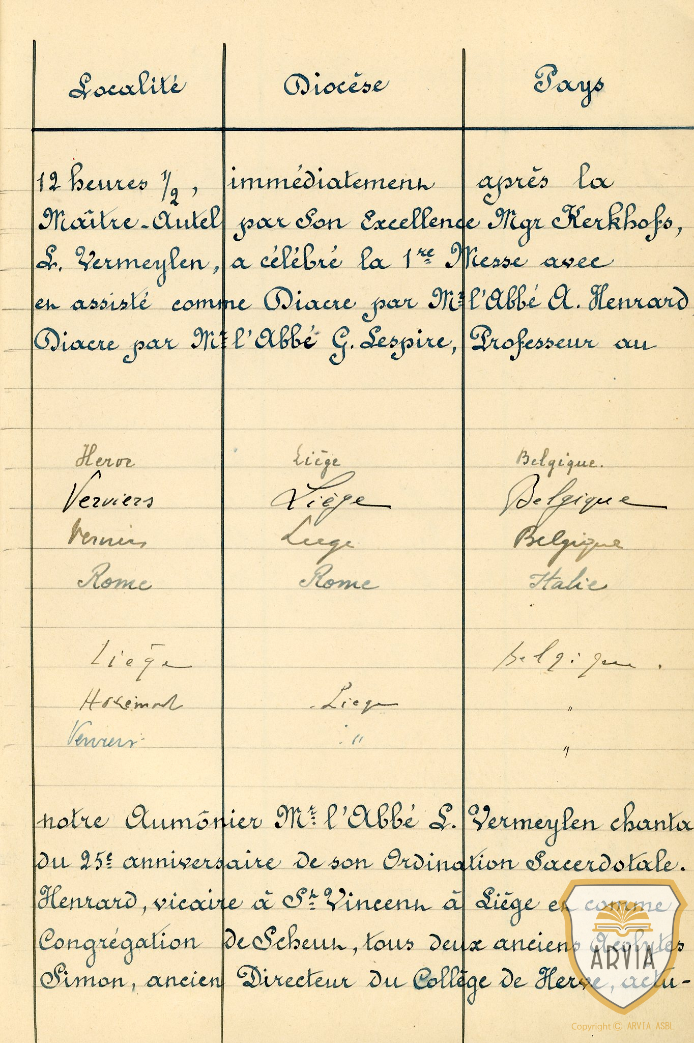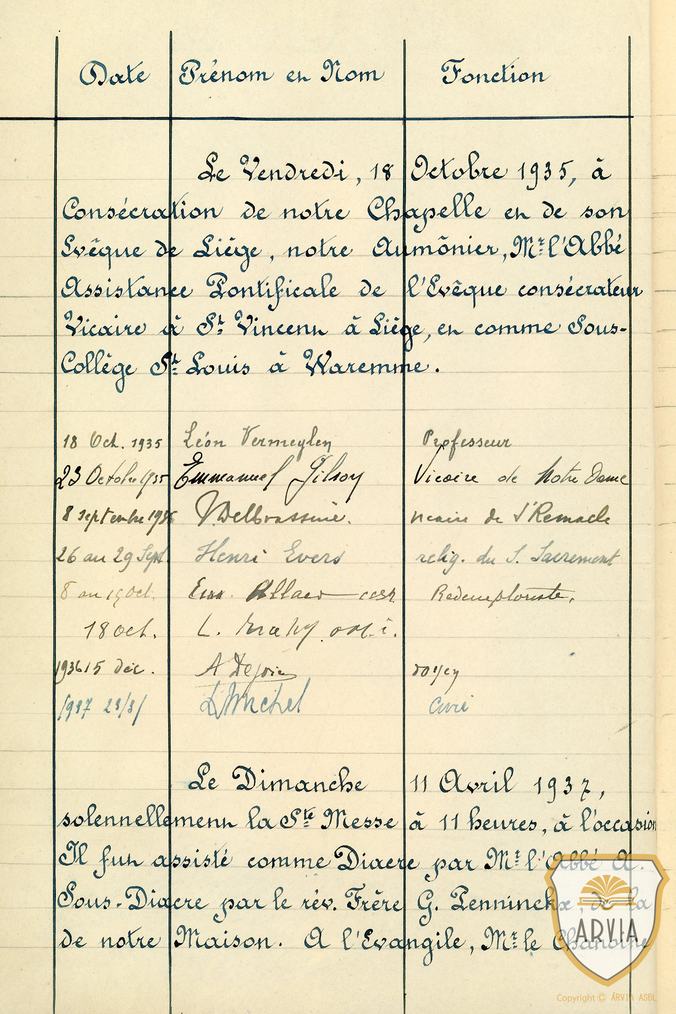 BRUYERES – Elvaux – 1935 – livre de la chapelle pour la liste des présences des Ecclésiastiques