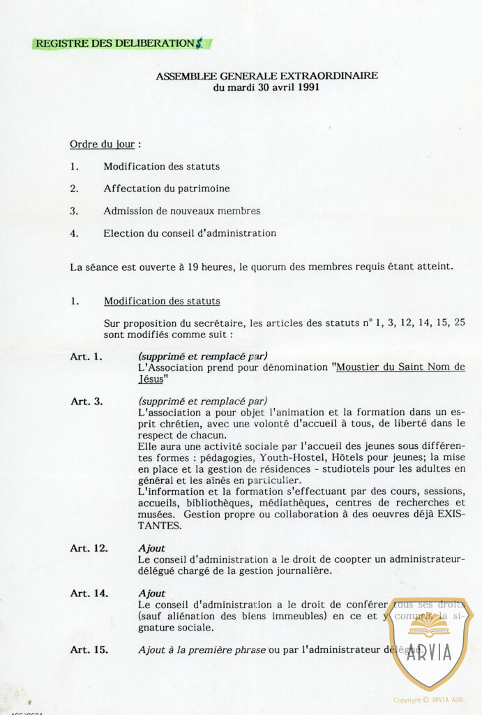BRUYERES – Elvaux – 1991- Changement de dénomination par » Le Moustier du Saint nom de Jésus « 16 octobre 2025 Jean-Marie Doppagne