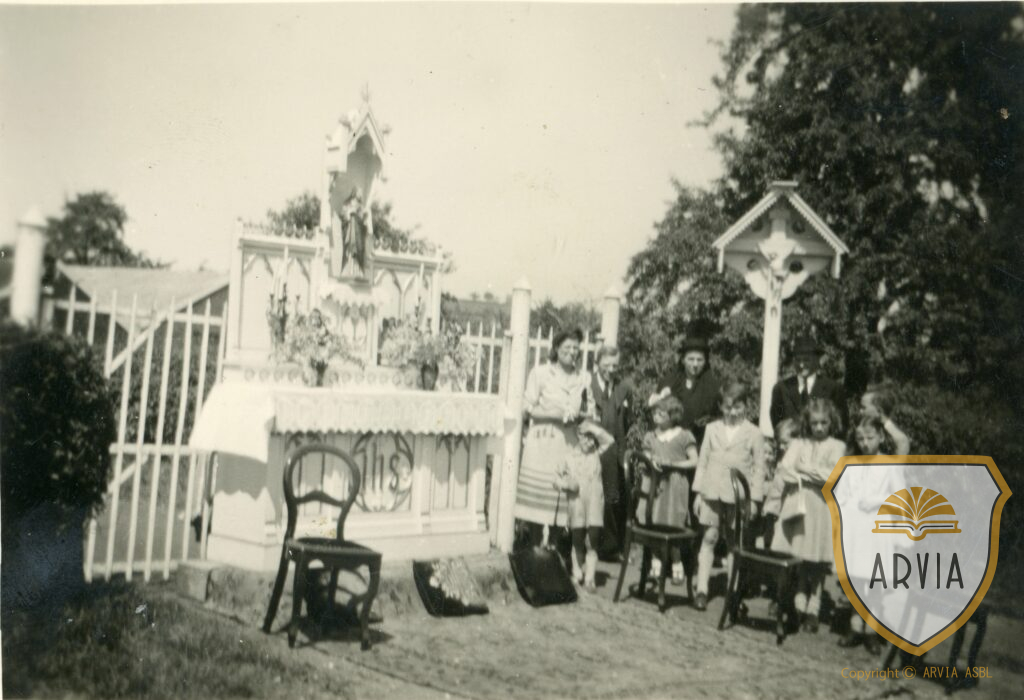 CHAINEUX ± 1958 – jour de procession devant l’autel et le Christ, face à la ferme BEUVENS 13 octobre 2025 Jean-Marie Doppagne