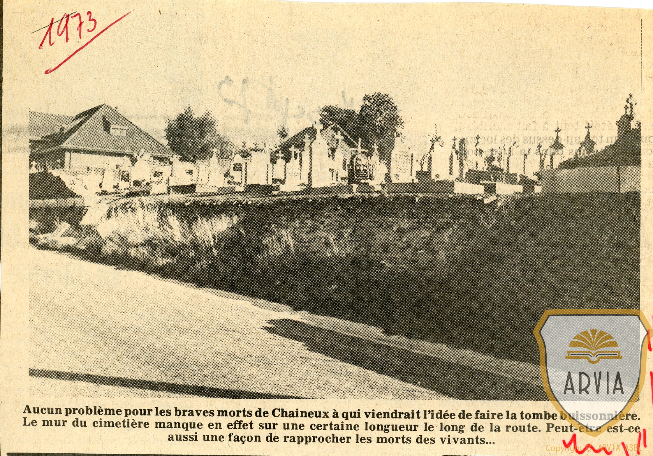 CHAINEUX – 1973 – le mur du cimetière en partie en ruines …. pour rapprocher les morts des vivants…. 16 février 202616 février 2026 Jean-Marie Doppagne