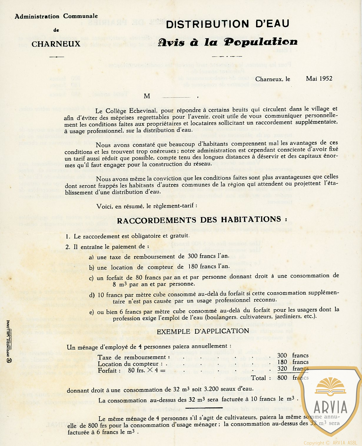 CHARNEUX – 1952 – Distribution de l’eau et raccordements des habitations et des prairies – TAXES 25 décembre 202525 décembre 2025 Jean-Marie Doppagne