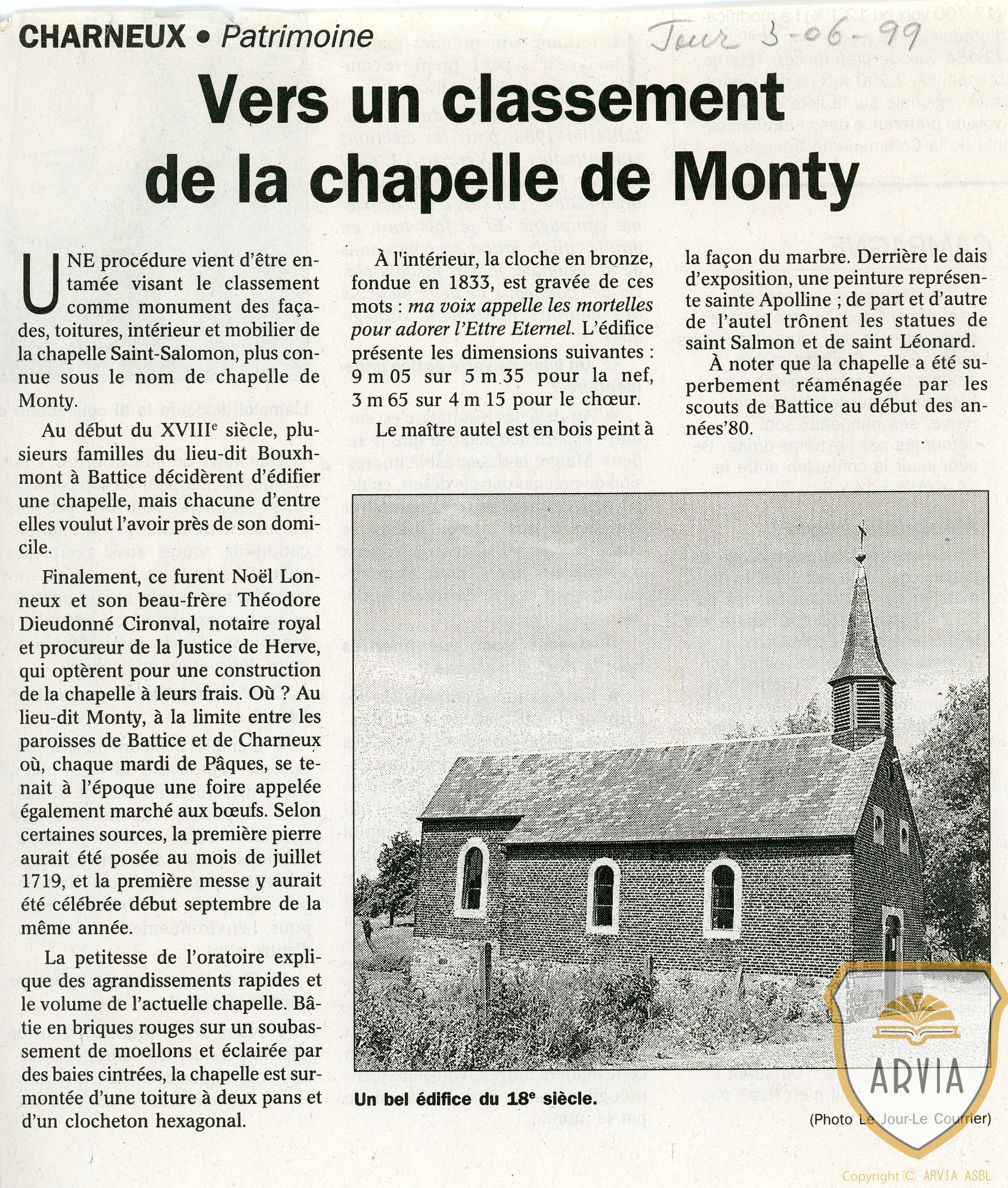 CHARNEUX -1985 – Restauration de la Chapelle du Monty – Classement de la chapelle 1999 – article de presse 8 janvier 20268 janvier 2026 Alain Fafchamps
