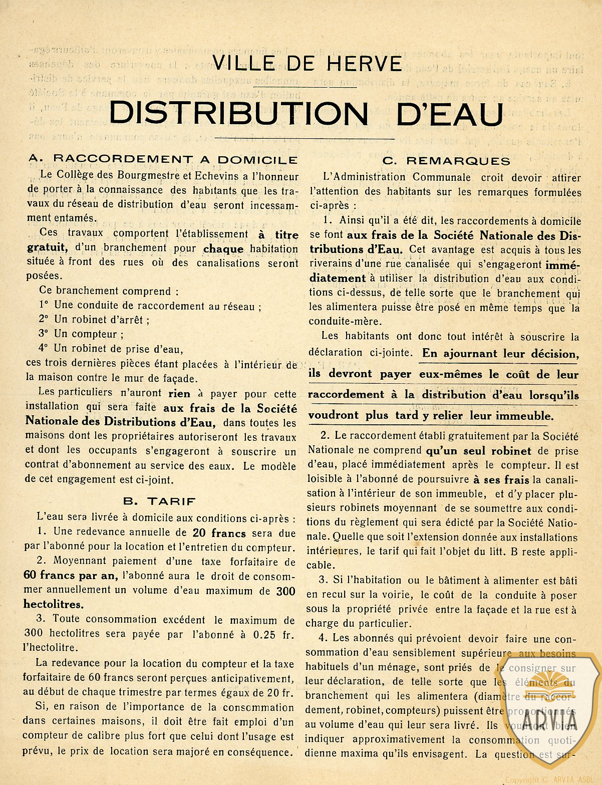 HERVE ± 1938 – Distribution d’eau – tarif pour le raccordement à domicile – remarques 9 février 20269 février 2026 Jean-Marie Doppagne