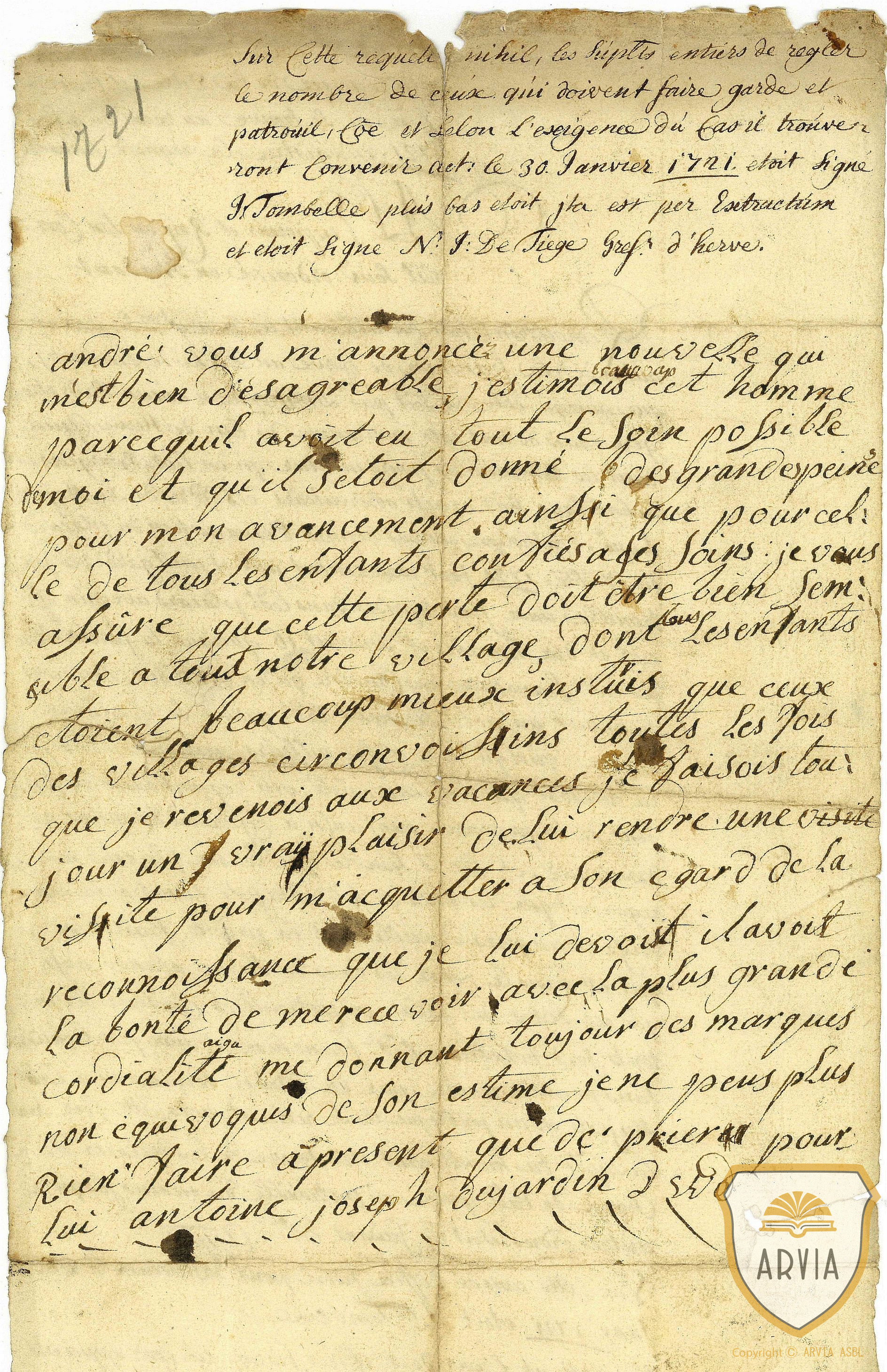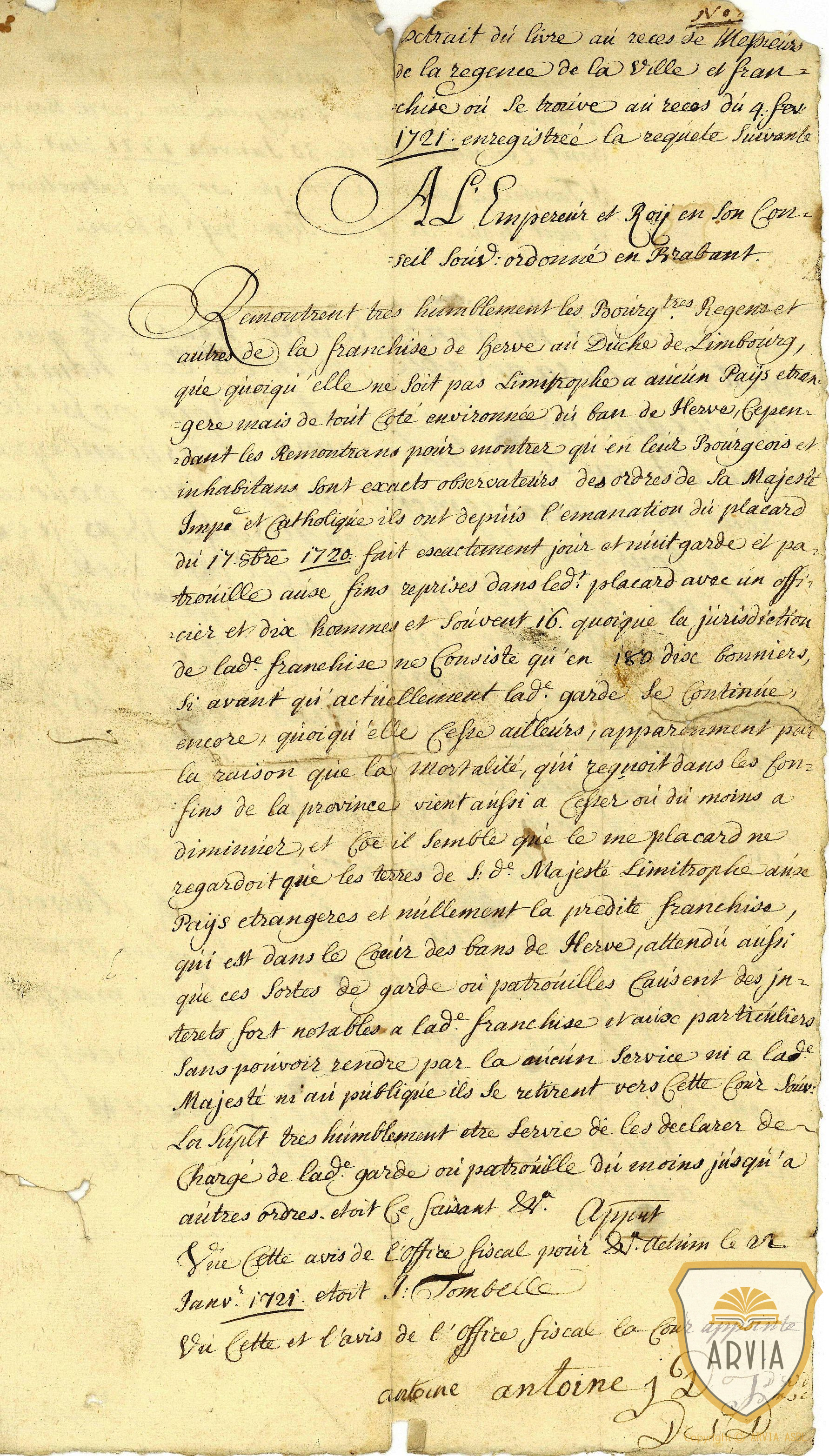 HERVE – 1721 – concerne le Ban de Herve – lettre manuscrite – F. De Tiège Greffier d’Herve 18 décembre 202118 décembre 2021 Jean-Marie Doppagne Requête A L’Empereur et Roij en son Conseil sous ordonné en Brabant ( Les Pays-Bas autrichiens (1715-1792 )