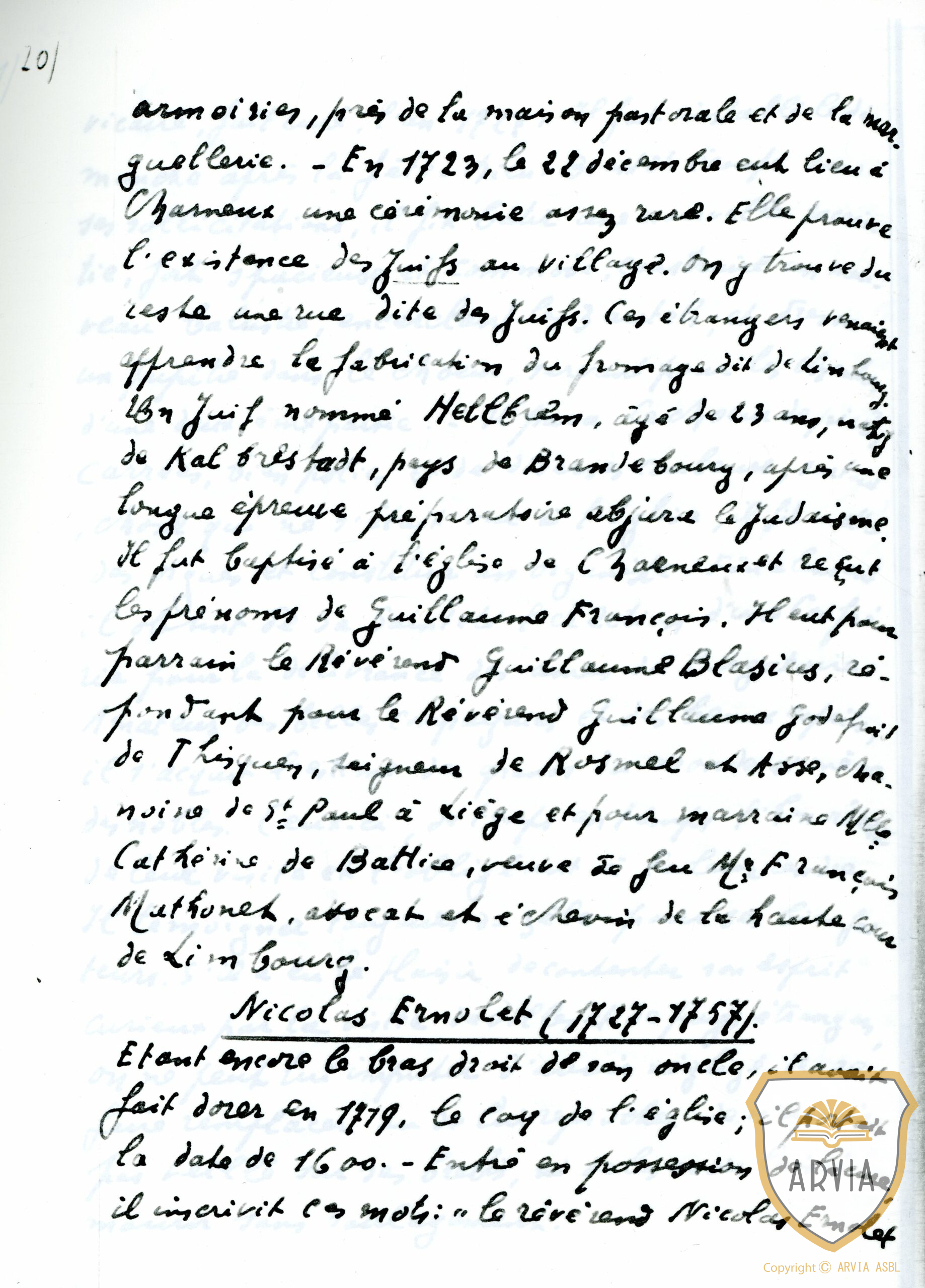 Dans les manuscrits de Nicolas Ernolet ( Charneux, Val Dieu et Grand Herve ) , recopiés par l’abbé Floribert DUBOIS de Clermont Thimister ( historien ) en plusieurs tomes ( 12 )