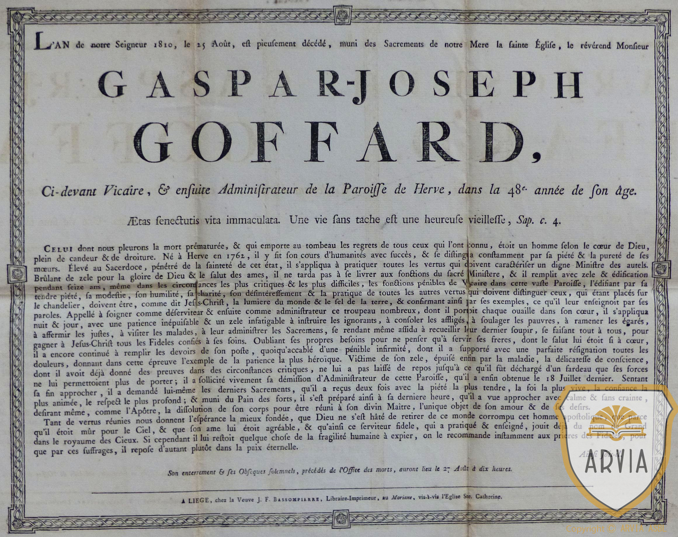 HERVE – 1810 – Gaspar-Joseph GOFFARD – Ci-devant Vicaire & ensuite Administrateur de la Paroisse de Herve 13 mars 2026 Jean-Marie Doppagne