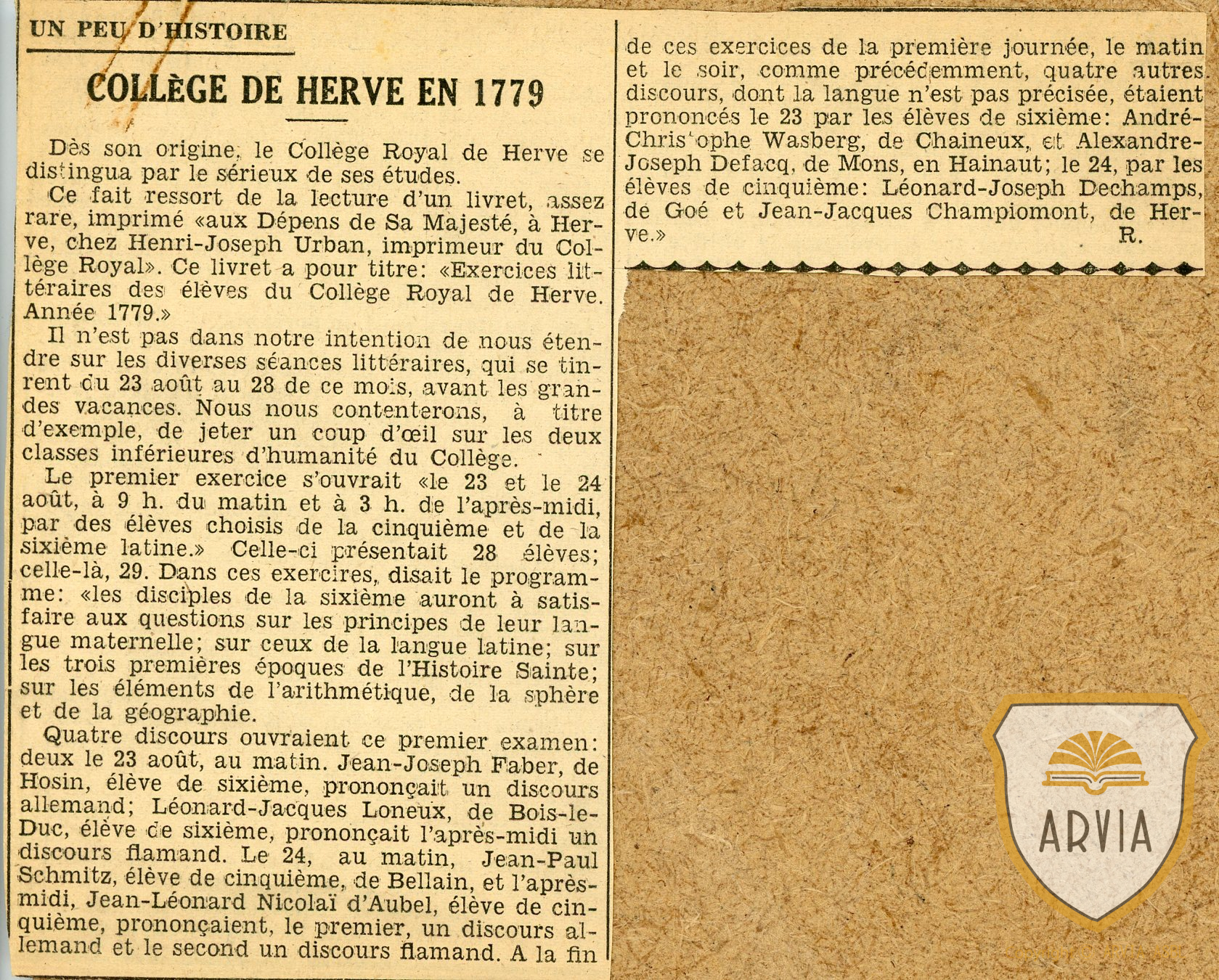 HERVE – 1777 – Miscellanées – recueil de nouvelles pour les débuts du Collège Royal M.Thérèse 30 juillet 20215 août 2021 Jean-Marie Doppagne Articles publiés en 1872 dans le Courrier de HERVE. Les directeurs du Collège depuis 1777, leurs constructions + Collège de Herve en 1779 + Les Directeurs du Collège de 1777 à 1947 + Les dernières améliorations du Collège.