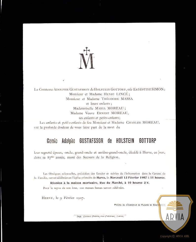 HERVE – 1907 – Lettre de Mort – Comte Gustafson