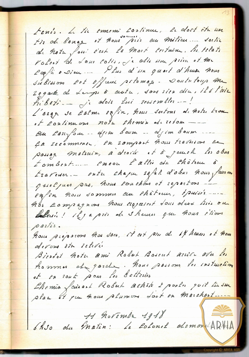 Journal de campagne durant la guerre 1914-18 (année 1916-1917-1918-1919) suite
