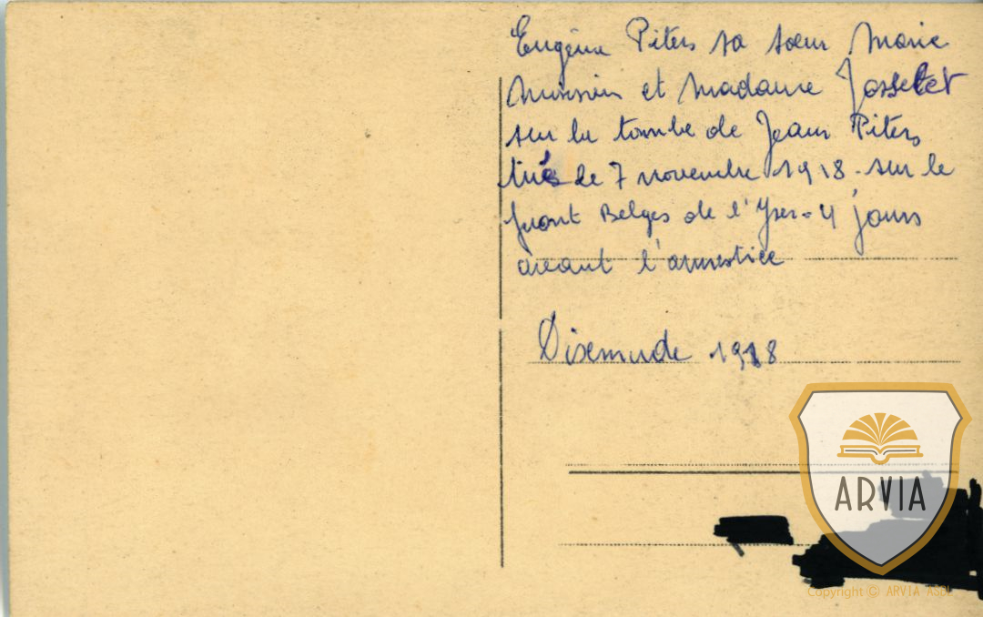 Herve-1918-sur la tombe (à Diksmude ) de Piters Jean tué au front 7-11-1918 – (Eugène Piters , sa soeur Mr et Mme Josselet) 1 novembre 2022 Gérard Bonsang